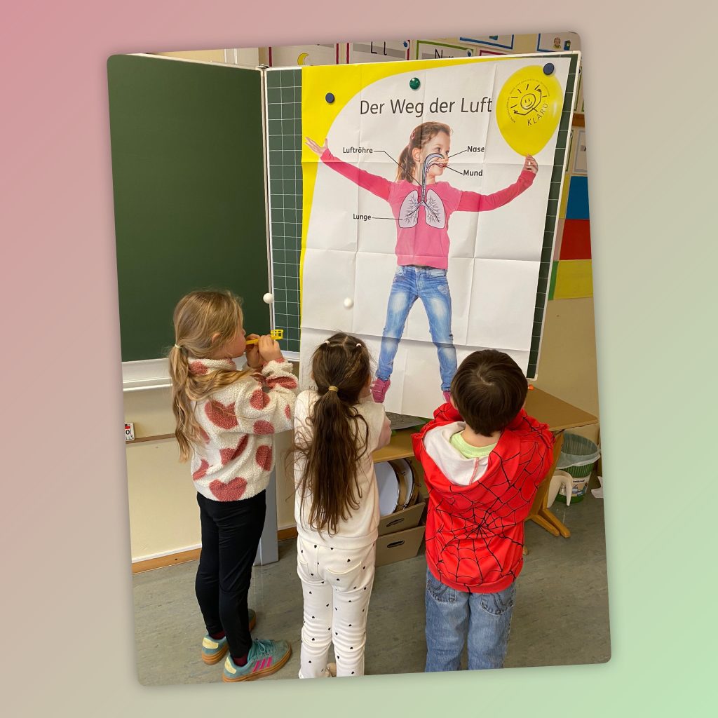 Am Donnerstag, 5. Februar 2026 besuchte die beiden 1. und die 2. Klasse unsere Gesundheitsberaterin von Klasse 2000 Frau Fisher. Um den Weg unserer Luft ging es in den 1. Klassen. Spielerisch Luft bewegen, war dort das Motto. Und KLARO durfte natürlich auch dabei sein!